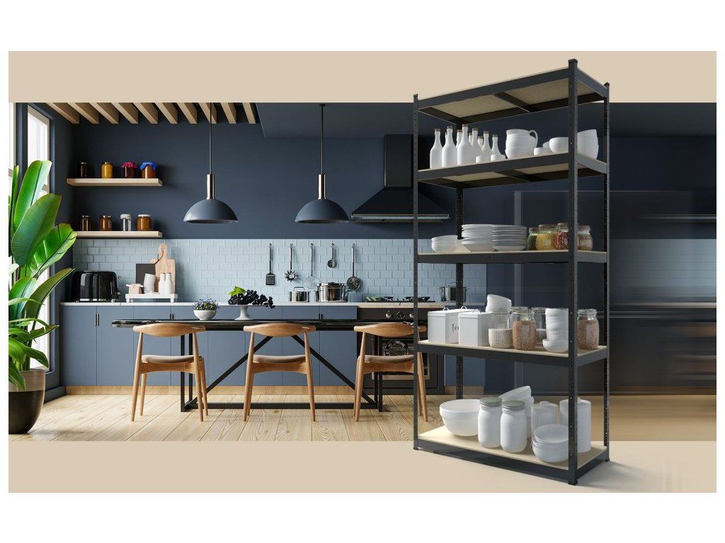 Kovový regál 180x90x40cm, lakovaný - černý, 5-policový, nosnost 875kg